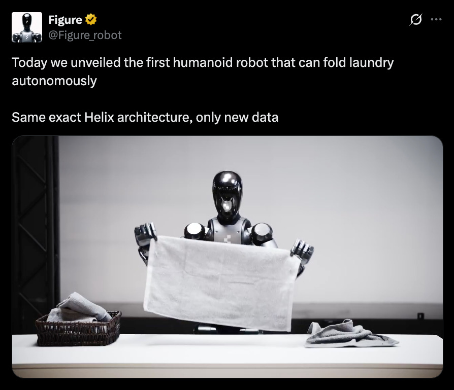 Figure has demonstrated that their AI architecture “Helix” can transfer from warehouse logistics to delicate household tasks with just new training data.
